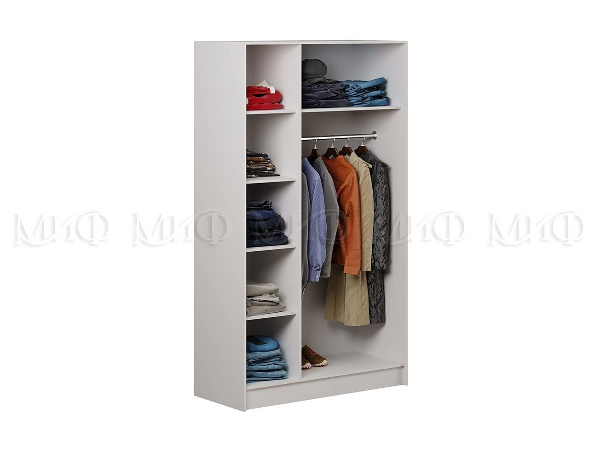 Шикарный, белый шкаф "Алекс" не только красивый, но и многофункциональный, так как внутреннее наполнение с полками и штангой.