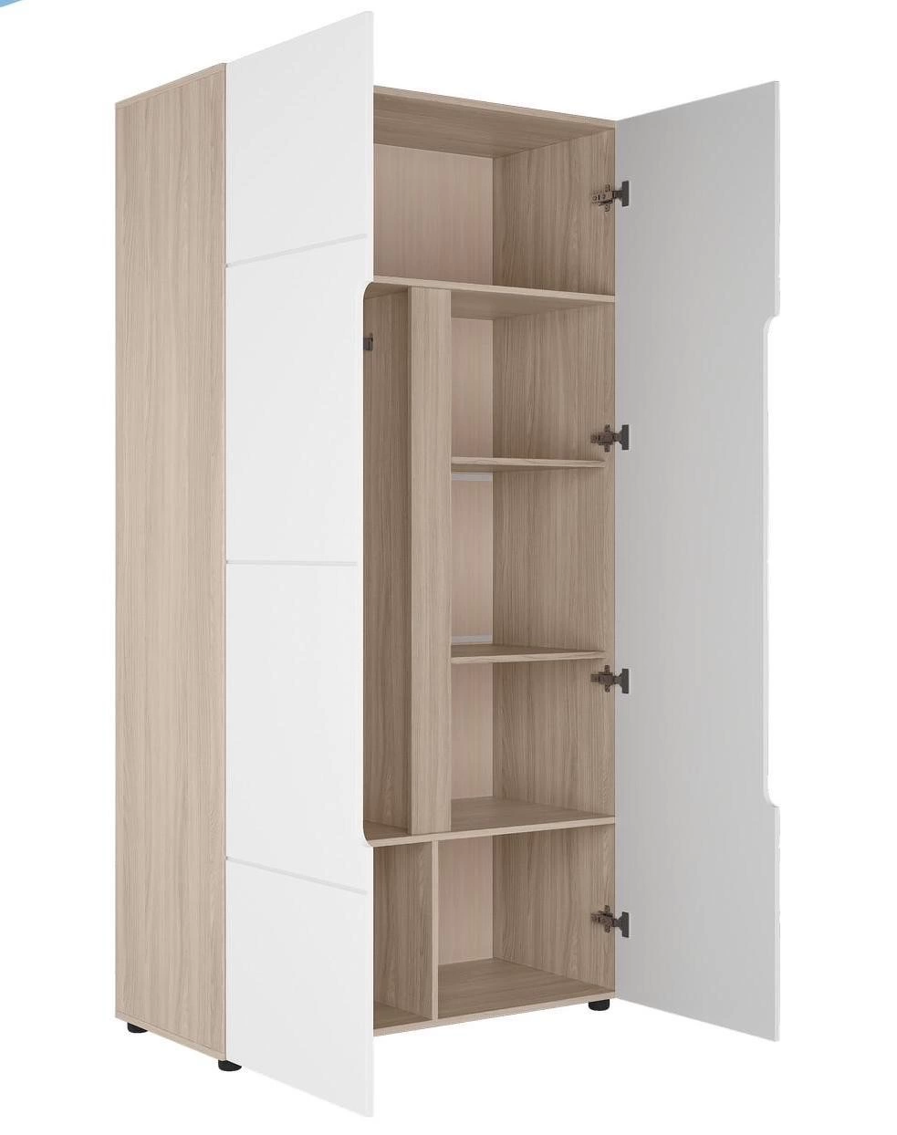 - Шкаф оснащен секцией с металлической штангой и секцией с полками